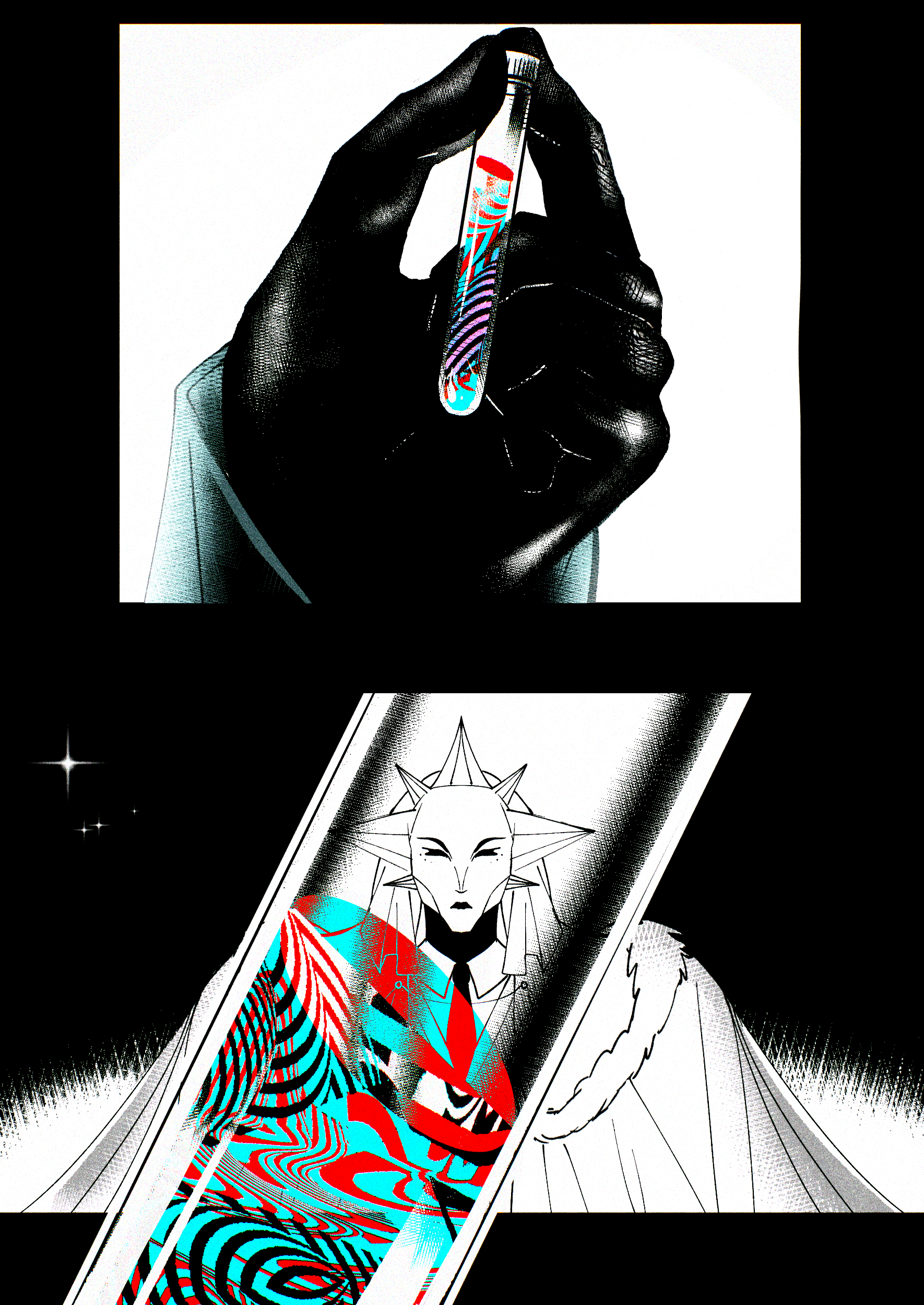 Mr. Alves: The vial I am holding is just a small increment of its material. Notice its strange behavior, tilting on a different axis, and its unusual sheen.